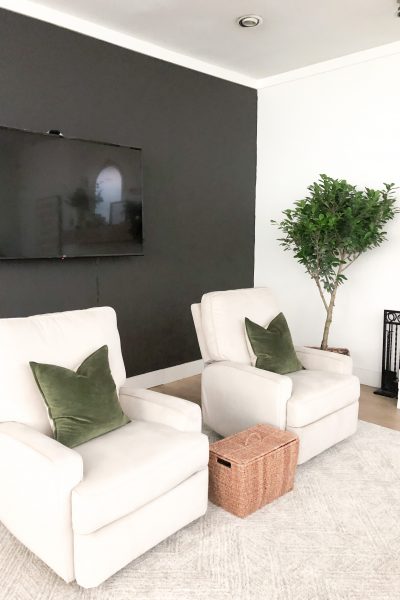 So guys, it has been a couple months since we did it, but we painted a wall in our den BLACK!! I shared the process on my Instagram stories in September, but I know that not all of you follow me there, so I want to be sure to document all of our home renovation on my blog as well….